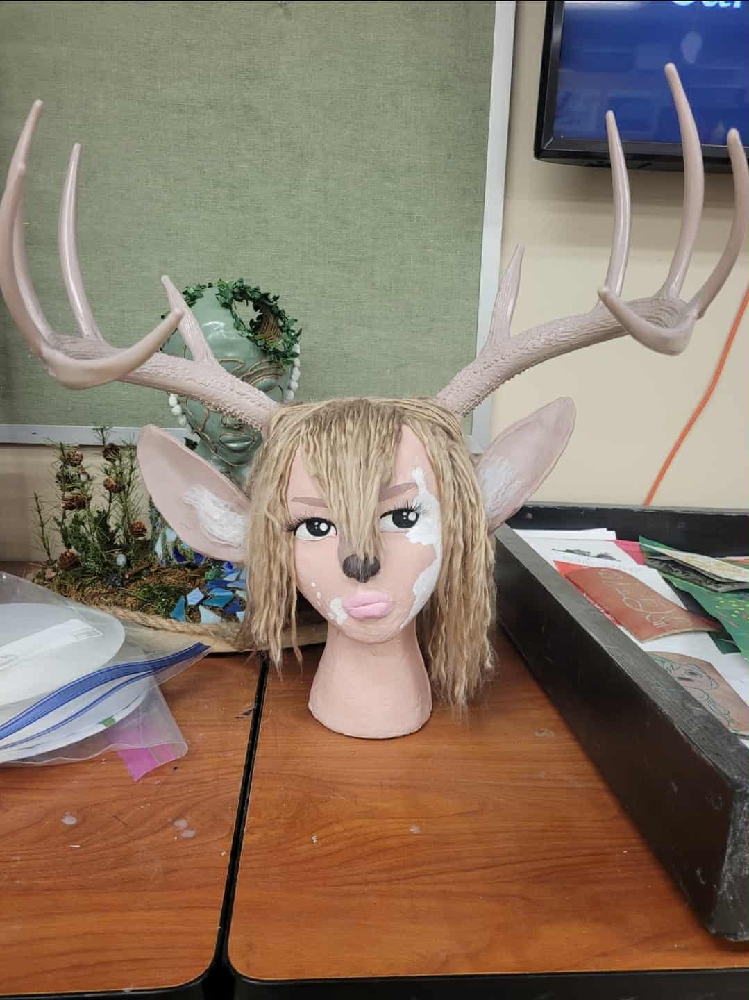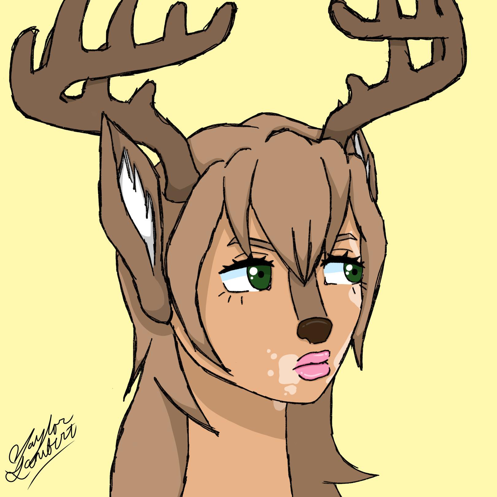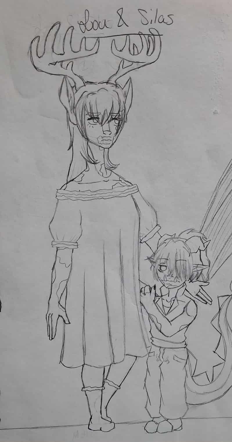|      Lou has evolved over the years. I created her in (I want to say, I'm not sure) 2019-2020. The earliest drawing I have of her is from February of 2023, but she existed first in writing. When she was created, I was going through what was probably the darkest period of my life. I lived vicariously through this character, who had run away from home and found safety, protection, and true love in a responsible and honorable man, Jim Lake Jr., who shielded her from her old issues. She formed such a deep bond that it was literally biological and even had several children with him. It feels incredibly stupid to me now to have latched onto a children's show character and created such a universe around him, but I will admit that it still brings me comfort to this day. Lou has deep sentimental value in my heart. Though she is a Trollhunters OC, I use her a lot for crossovers, so she can be "found" anywhere (maybe even sometimes in the Super Store). Info about Lou: Lou is 7'4 and ~300 pounds of mostly natural muscle. Her frame is thin with wide hips and elegant limbs. She has tan skin and vitiligo patterns on her face and parts of her body. Her hair is long, slightly wavy, and usually described as "champagne colored." Her eyes are considered "gentle" and are forest green. She has plump, pouty lips, thick brows, a deer nose and ears, and tall antlers. Her antlers do shed every year, and sometimes come back in extremely different shapes, such as in the shape of an elk's rack, or in the shape of a white-tailed deer's. She is my own fictional species of troll, a Huldra, which are one of the most human-like species of troll (they are based on the Scandinavian hulders), and are the most rare. They still act extremely troll-ish and go through the same things that would happen to a troll, such as turning to stone in sunlight. They are characterized by their human-like skin (in females) and animal-like features. They can have any animal's features, but most have ruminant ungulate features, such as deer and cattle. Most Huldra have some degree of control over nature, however Lou has not found to be proficient in this skill. Lou is from northeastern Kentucky, otherwise known as hillbilly country or "the sticks." Her accent is extremely heavy (think 'warsh rag' and 'oyl'). Her father was not present and her mother was both an addict and extremely controlling. Until she was an older teenager, she lived as a human, unknowing of the world of trolls. A spell in which she was charmed to always seem human was cast on her before birth. When she turned 16, the spell was overpowered and lifted by her first heat (canonically trolls do not have these, in my brain they do, blame the horny teenager that made it up a bajillion years ago). She unwittingly ran away from home, to Cartonsville, New Jersey (fictional), in the middle of the night, her mind addled by the effects, where she was drawn to New Trollmarket's Heartstone and rescued by Jim Lake Jr.. Currently, she has one canonical child, Silas, and several non-canonical children (meaning they aren't written into the story yet). Personality wise, Lou is a quiet observer, having learned this behavior from being around her mother. However, when she got away from her, she learned when and how to stand up for herself. When comfortable, Lou can become talkative and a story-teller. With her children, and with people she sees as vulnerable, she is especially attentive and motherly. |